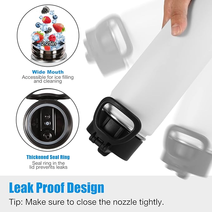- VACUUM INSULATION DOUBLE WALL: The water bottle is designed with vacuum insulation, which can keep your drink warm for 12 hours and cold for 18 hours, perfect for you to use at home or take with you when you go out for traveling.