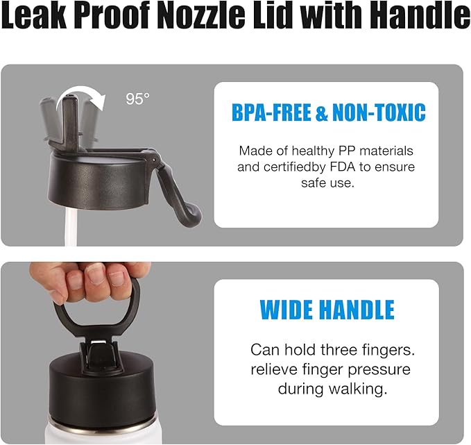 - CONVENIENT BOTTLE DESIGN: The lid is designed with a straw lid, flip-top spout makes it easy to drink, no leakage when fully closed, foldable handle, slim bottle can be easily put in your school bag, perfect fit for car cup holder, wide spout for easy refilling of water or adding ice cubes.