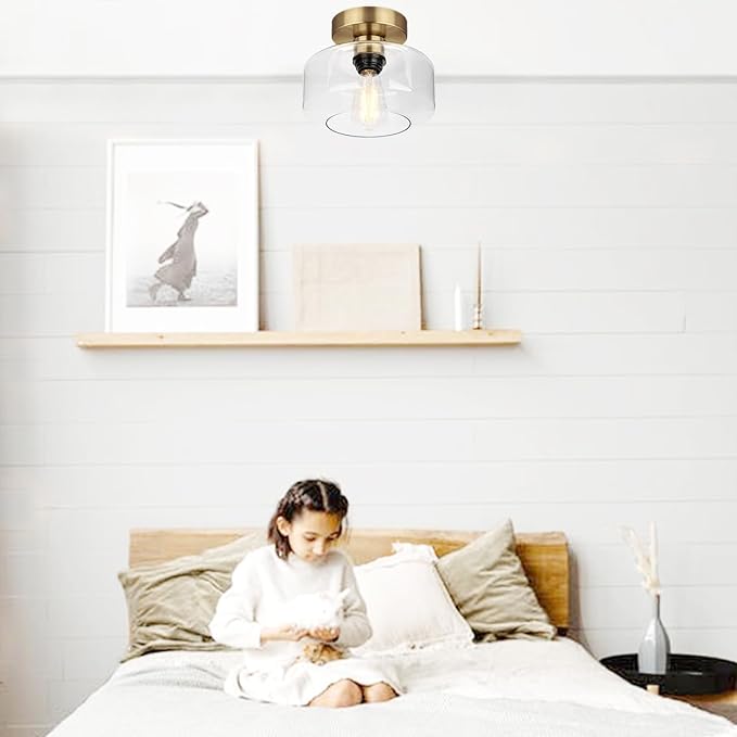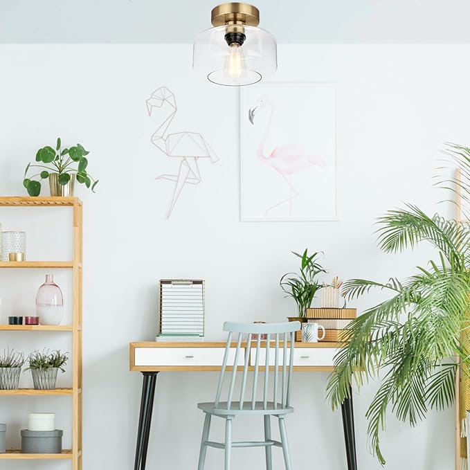 - Semi Flush mount Design& Classic Style--- This ceiling light is perfect for your Industrial /Modern look! A Brass base and impurity-free hand-blown clear glass with excellent light transmittance offer a modern interpretation of a classic urban-industrial, gives you just the perfect lighting whenever you need.