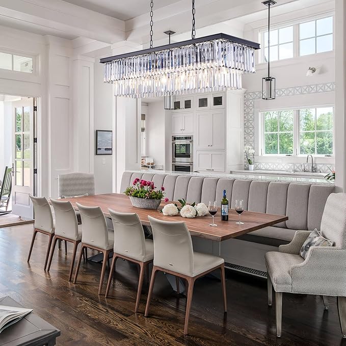 - Adapt to Multiple Styles: Fit with the home design of classic, modern, contemporary, luxury, transitional, industrial, and rustic vintage, this rectangular chandelier can work on low/high ceiling, slanted ceiling