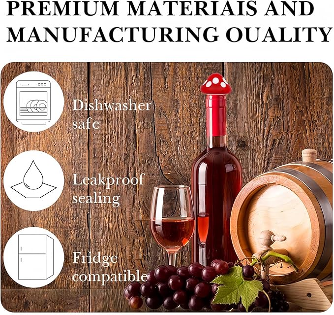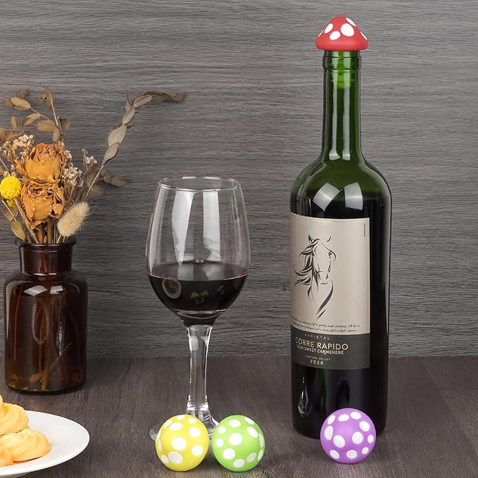 - Wine Bottle Stoppers in Mushroom shape suitable for occasions like Christmas parties, weddings, birthdays, anniversaries, graduations, or daily use.