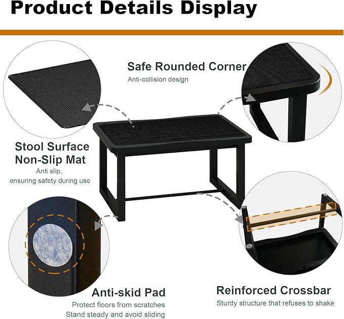 - 【Safe Rounded Corner】We design all corners to be rounded, in order to fully protect your safety during use.Anti-slip Pad ensure stool stay steady and avoid sliding, also can protect floors from scratches.