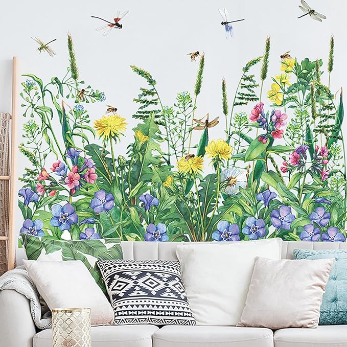 - 【Easy To Apply & Remove】: Just peel and stick.The green plant wall decor can be stuck to any smooth surfaces, walls, furniture, tiles, mirrors and windows.