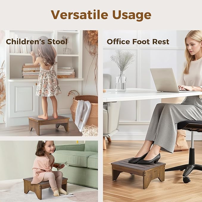 - Sturdy and Reliable: This bedside step stool supports up to 300 pounds, making it a secure choice for all ages. Its anti-tipping design is perfect for reaching higher spots or climbing into tall beds, making it an essential bedside stool.