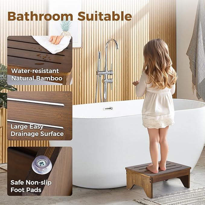 - Premium Quality: Made from 100% solid bamboo, this bed step stool has an elegant openwork design with a varnish coat, blending durability with decor. It’s a sophisticated step stool for adults that complements any room.