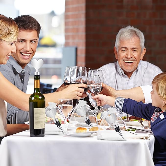 - Packing List: you will receive 24 heart shape wine stoppers and 24 white organza bags, the top design of the wine stopper has a heart and two balls, symbolizing two hearts together, this design is full of love, can increase the romantic atmosphere of the scene and sufficient quantity can better meet your daily different decoration and replacement needs; You can also share it as a gift with your friends, guests or family