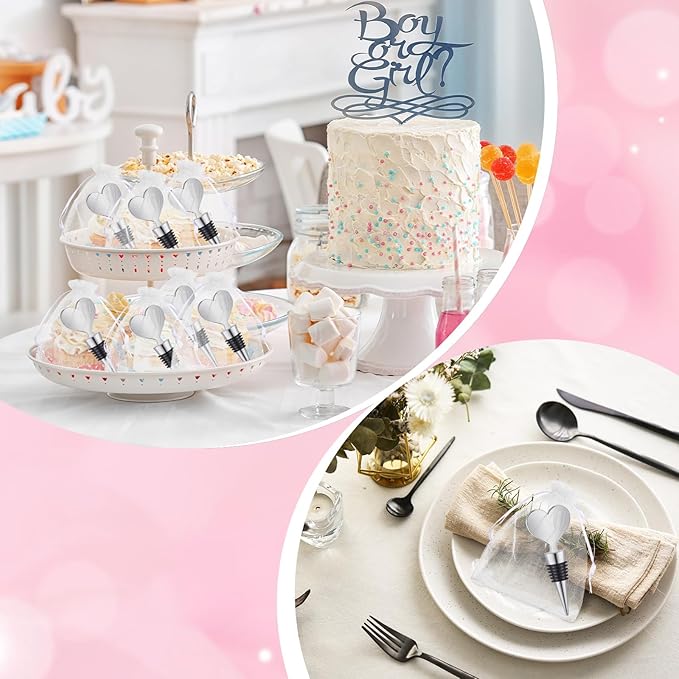 - Reliable Material: these wine stoppers bulk are made of durable zinc alloy, safe and serviceable, not easy to break or deform, you can trust to buy and use them, they will last you a long time, the surface of the heart shaped bottle stoppers is smooth, delicate, beautiful, and these drawstring bags are made of organza; You can wrap these wine stoppers in organza bags and give them as gifts to relatives, guests and friends who will love this decorative and practical gift