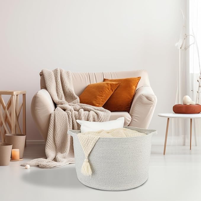 - Designed to complement your room and decor: We have carefully selected classic solid colors for these rope basket bins for laundry or blanket. With these colors, the baskets for blankets will look good in any room of your home. These round rope blanket storage baskets enhance any room or decor. It is perfect for bedrooms, bathrooms, and dorm rooms. These aesthetic rope baskets for bedroom are essential items for your daily storage needs, helping keep your room clean and organized.