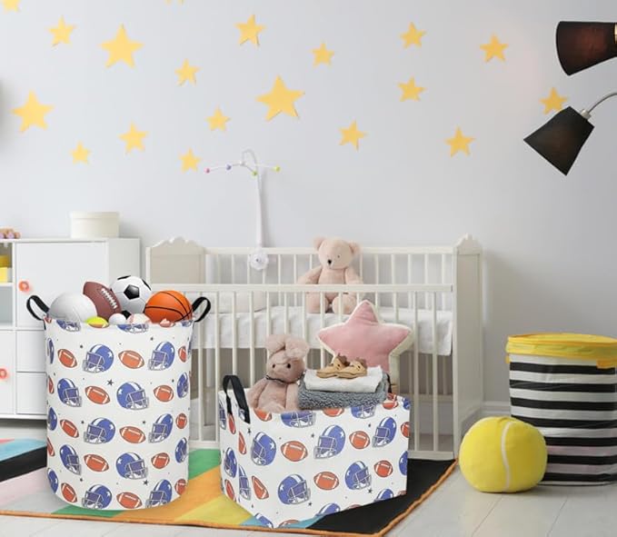 Kids Laundry Hamper,Canvas Football Laundry Basket Collapsible Boys Storage Baskets for Home,Office,Toy Organizer,Home Decor(Football)