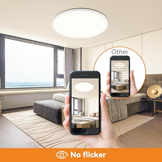 - 【Energy Saving & 3 Color Modes】Equivalent to a traditional 150W two-bulb, Slochi LED ceiling light only has 36W(3600 lumens) low power consumption, which can save up to 90% on your home electricity bills by replacing your old lighting fixtures . In addition, our flush mount ceiling light adopts advanced color temperature adjustable chip with 3 color temperatures (Warm White 3000K, Natural White 4500K, Daylight White 6000K).