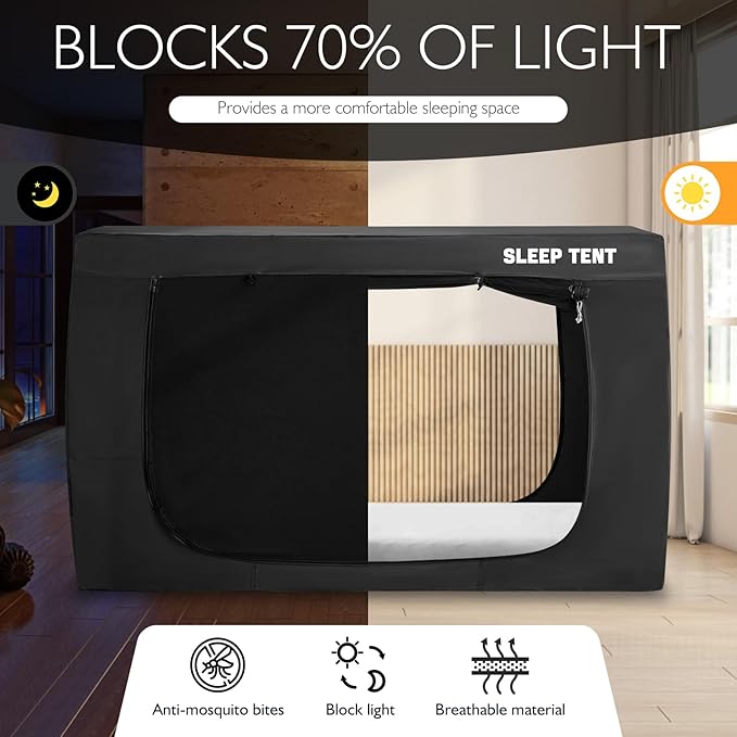 Bed Tent Twin Size Blackout Privacy Indoor Bed Canopy for Adults Sleeping Tent 75% Light Breathable(Mattress Not Included)