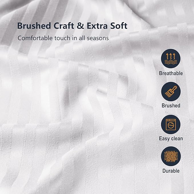 Twin Comforter Set with Sheets, 5 Pieces Super Soft Twin Bed in a Bag, All Season Solid Color Kids Bedding Set Neutral for Boys & Girls, White Striped