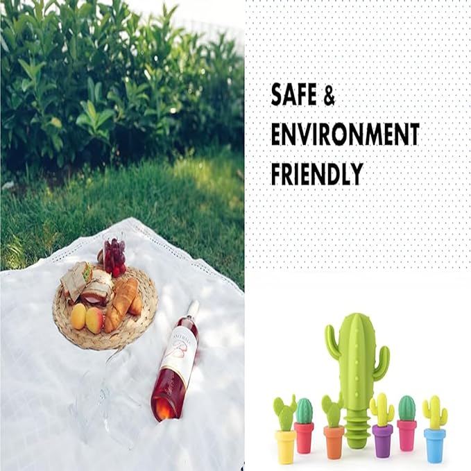 Cactus Silicone Wine Bottle Stoppers,Cute Wine Accessories, Reusable Wine Beverage Corks, for Gifts, Bar, Holiday Party, Wedding (7, M)