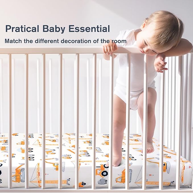 - 【Easy Care】: Simply toss this construction trucks crib sheet into the washing machine on gentle cycle and it'll be as good as new. Try to avoid sun exposure, can dry it on the reverse side. The high-quality fabric ensures that standard crib sheet retains its shape, color, and softness even after multiple washes, making it a practical and long-lasting investment.