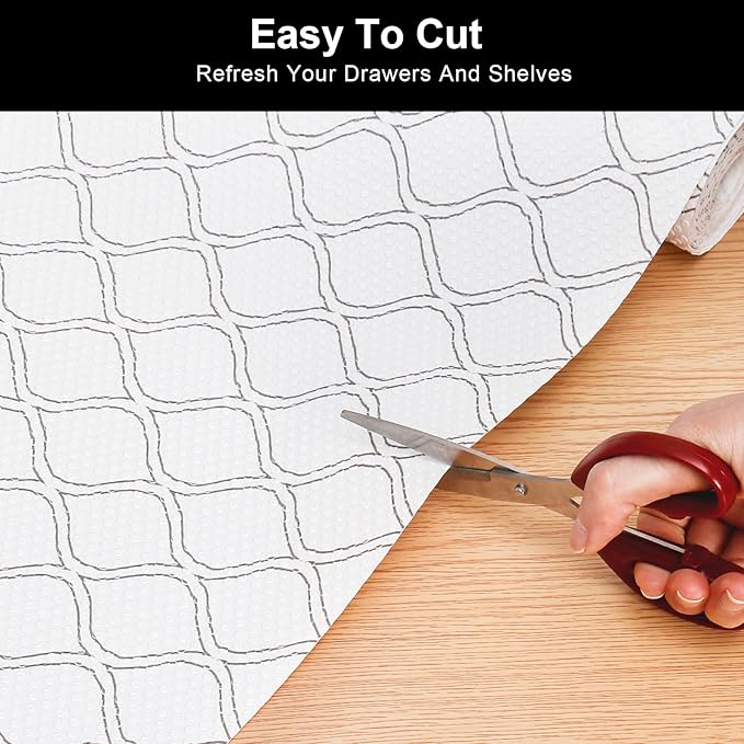 - EASY TO INSTALL AND CUT: Cabinet liner are easy to cut, you can easily cut them into the shape you want with scissors, then place the liners on a drawer or table and trim off the excess material. Our drawer liners are non-adhesive and easy to remove.
