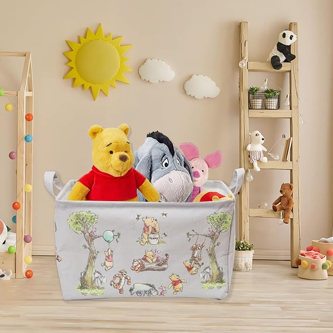 Winnie Storage Nursery Basket, Large Square Canvas Laundry Hamper With A Waterproof PE Coating, Foldable, Bathroom and Bedroom Set, Clothes ,Toys Bin, Baby Nursery Hamper Decor(Grey)