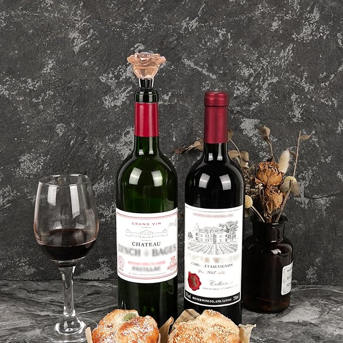 - Made of high-quality metal alloy in a detailed rose shape design.The bottle stopper is wrapped in food grade silicone to keep your wine fresh