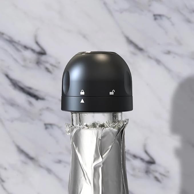 - AIRTIGHT SEAL: This reusable champagbe stopper is made of flexible, food-grade silicone that forms an airtight seal to keep wine and sparkling beverages fresh for weeks after opening.