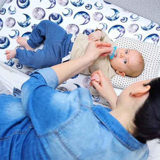 - PERFECT SIZE: The cloud letter and moon pack n play sheets come with full elastic trim all around 4 sides which make pack n play sheets are perfect for pack n play mattress and tightness to the mattress all night long easily.