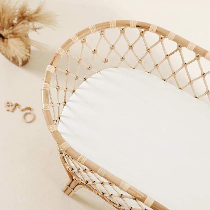- Universal Fit – Measuring 32" x 16" x 5". Our bassinet sheets fit almost all standard oval, round, rectangle, hourglass shaped bassinet mattresses and changing pads. Each bassinet mattress pad cover comes with an elastic band encased at the bottom for safety.