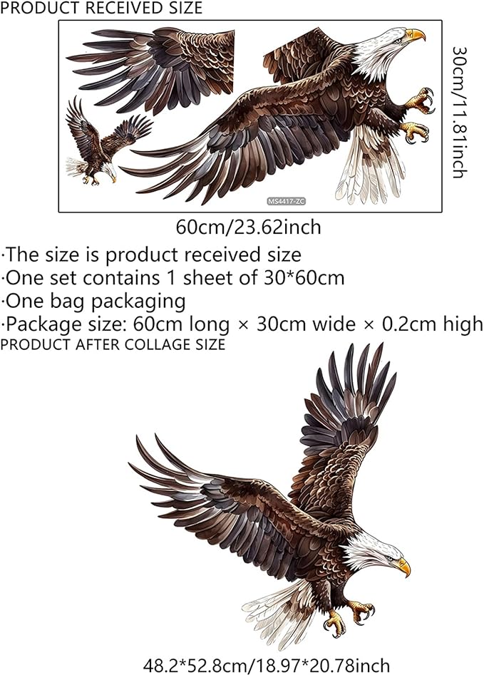 Watercolor Style Eagle Wall Decal Animals Wall Sticker Safari Wall Decor for Nursery Kid'sroom School Classroom Livingroom Bedroom Bathroom Decoration (Watercolor Style Eagle 3)