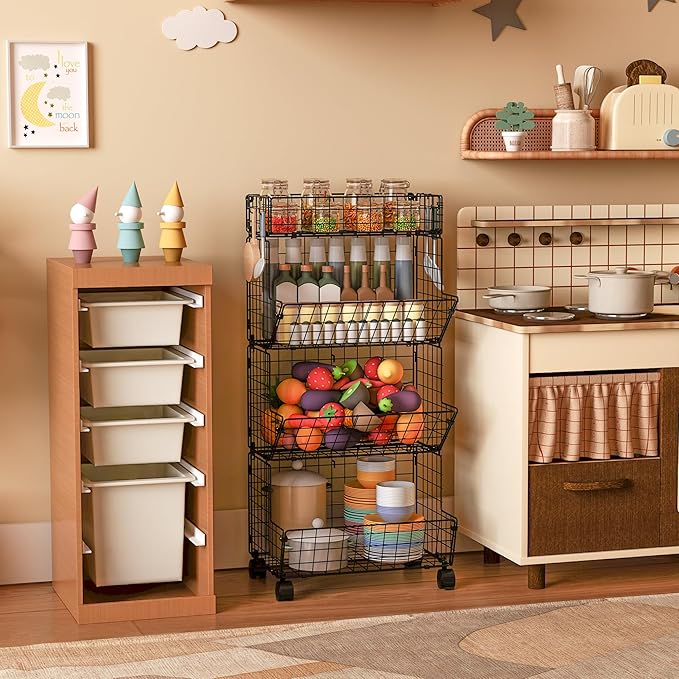 - ROLLING AND HANGING ORGANIZERS FOR EASY MOBILITY:The toy organizers and storage comes with 4 wheels, making it easy to move around as needed. Additionally, you can choose between wall-mounted baskets and floor-standing baskets, using them as standalone units or stacking them for convenience. This mobility and versatility ensure you can easily relocate and organize your child's items wherever needed, addressing the need for flexible storage solutions.