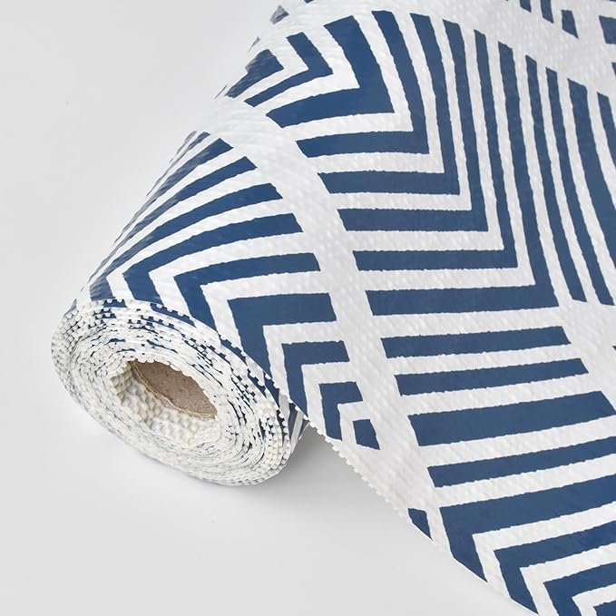 - 【Blue Striped Geometric Shelf Liner】: Stylish Design,Classic and modern styles,Our cabinet liners won't curl, providing a tidy and aesthetic look, and adding a touch of vitality and energy to your space