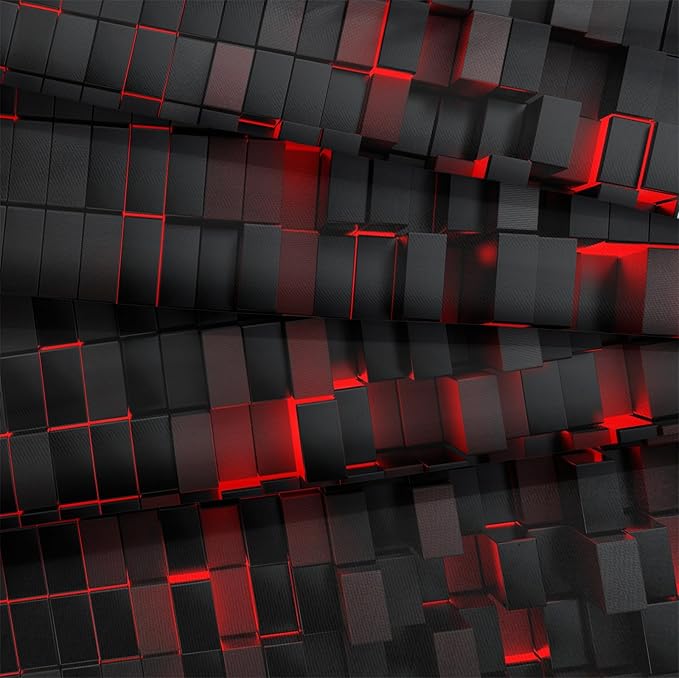 Bedbay Black Checkered Comforter Set King Size Plaid Bedding 4 Pcs Stereoscopic Glowing Square Geometric Printing Quilt Set Boys Girls Black Red Grid Bedding Set King Duvet Set (Red Black,King)