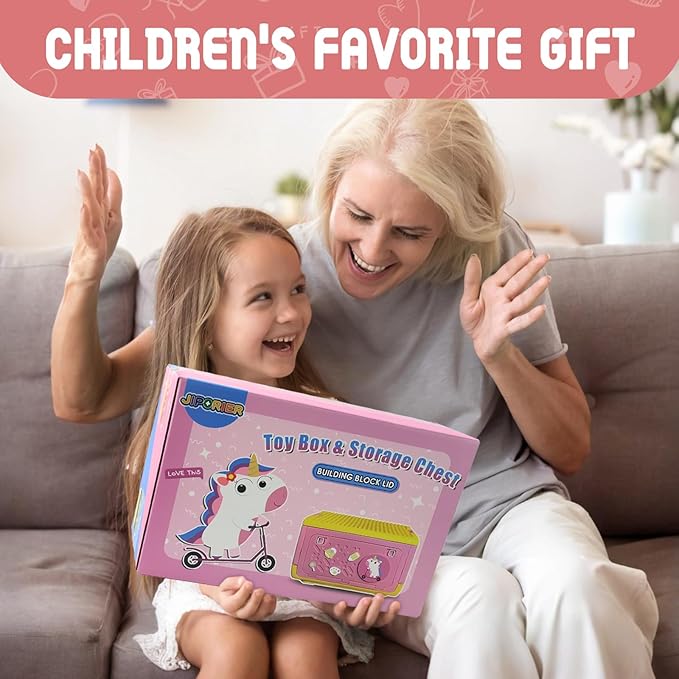 - [Creative Design] Different styles use original unicorn or dinosaur patterns, cute and beautifully placed in the home. Our double-door style has two small spaces on top for sorting a pile of toys, building-block style allows you to build blocks on top, it is compatible with 9mm Large Classic Building Bricks, allowing your child to unleash their imagination.