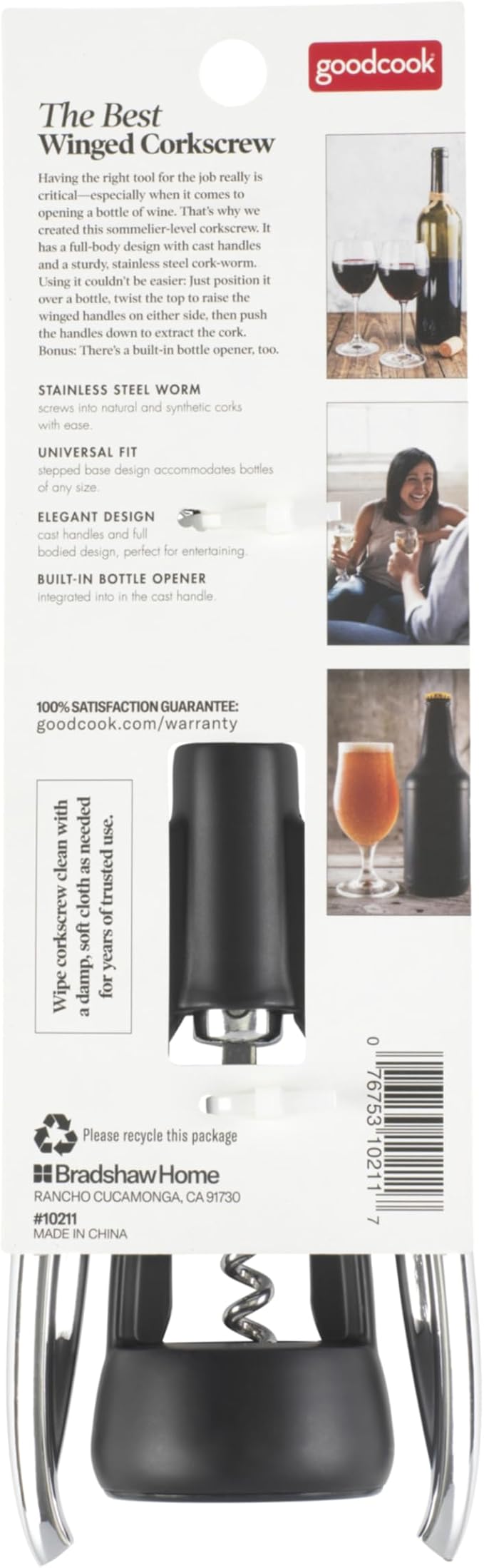 GoodCook Gourmet Deluxe Winged Corkscrew, Stainless Steel Worm, Universal Fit For All Cork Sizes