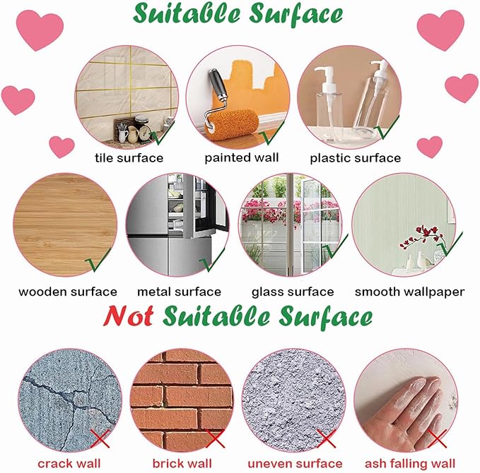 - 【ATTENTION】: Make sure the wall surface is smooth,clean,dry and dust-free.When removing the wall sticker,you can use a hair dryer to heat the adhesive, and then use a knife to lift the corner of the sticker gently and tear it off slowly. Tips: To prevent curling after sticking, put them under the weight and flatten them before using