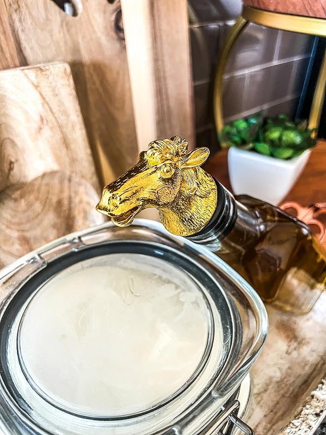 Wine & Cooking Oil Pourer | Gold Color Stainless Steel | Bottle Stopper Aerator for Whiskey and Liquor | Decanter and Bar Tools Accessories and Gift Set Ideas for Her and Him (HORSE)