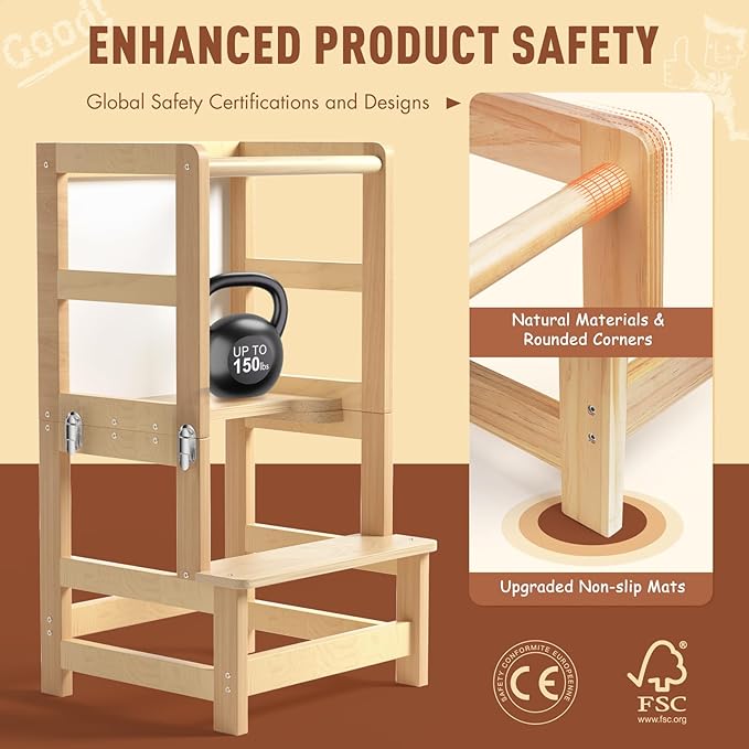 - Versatile and Engaging: Whether you need a Learning Tower, Toddler Stool for Kitchen usage, or a simple Toddler Step Stool , our Toddler Kitchen Stool is versatile enough to serve multiple purposes. Its engaging design makes it attractive to children, stimulating their interest and desire to help out in the kitchen, all while maintaining its functionality and safety.
