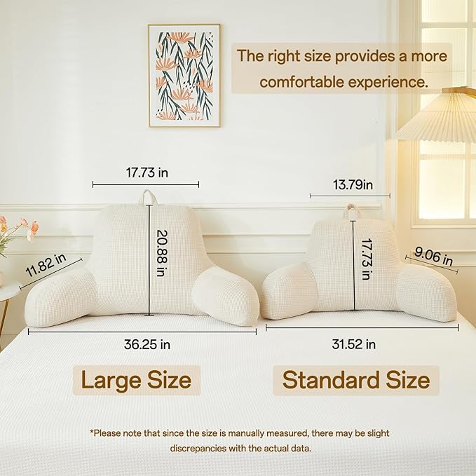 Back Pillow for Bed Sitting Up,Reading Pillow for Sitting in Bed Adult with Arm Pillow,Back Rest Pillow for Sitting in Bed with Pockets,While Gaming,Working,Watching,Standard-Ivory