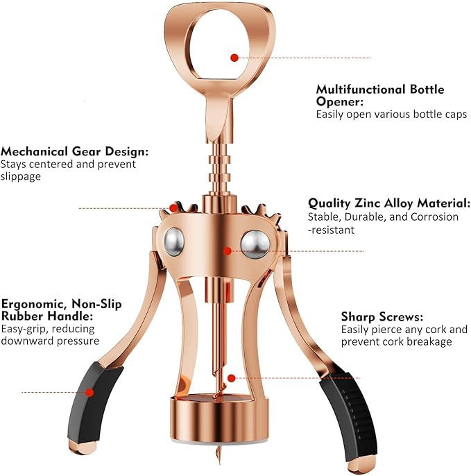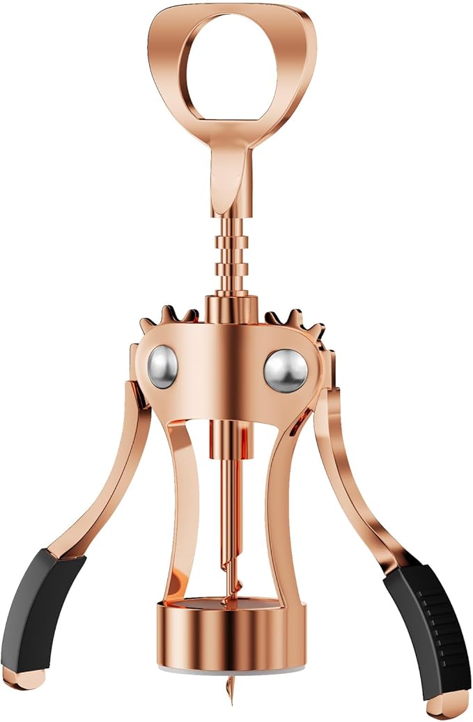 KORCCI Wine Opener, Wine Bottle Opener, Zinc Alloy Wing Corkscrew Heavy Duty, Cork Screw Beer Opener for Bartenders, Multifunctional Bottle Opener for Kitchen, Restaurant, Bar, Waiters (1, Rose Gold)