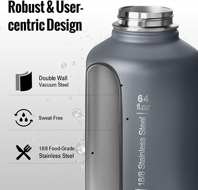 - Hydrate All Day Long: OneTigris 64 oz Water Bottle with its impressive capacity, this powerhouse ensures you stay hydrated all day long, eliminating the need for constant refills. Whether you're out on an adventure or conquering your daily routine, our 64 ance water bottle keeps you fueled and focused. Stay refreshed, stay energized, and stay ahead with our half gallon Water Bottle.
