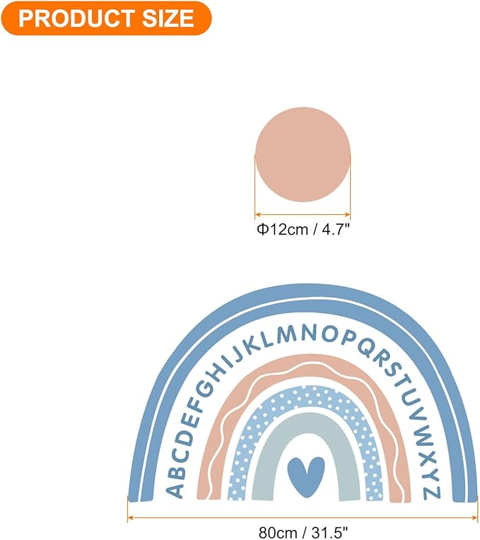- Color: Multicolor; Material: PVC; Sticker Size: Rainbow: 80 cm / 31.5 inch, Large Dots: 12cm / 4.7 inch; Packing Content: 1 Sheet x Wall Sticker ( include 19 Pcs)