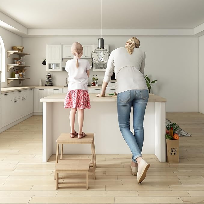 - PREMIUM NATURAL MATERIAL: Best gift choice. This stepping stool is made of 100% natural bamboo. Each piece is carefully sanded smooth and coated with natural and water-based paint that prevents scratches and scuff marks.