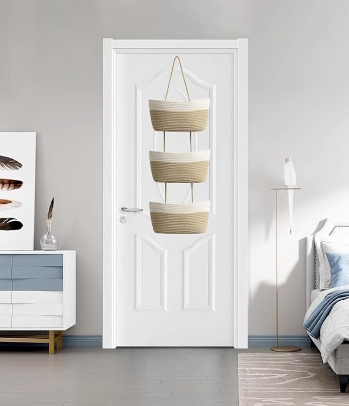 - Diversity and Personalization : This over the door hanging basket will work well with any home decor such as a warm, cozy,boho style.This hanging basket can be used to place clothes, cosmetics, dried flowers, debris, toys, baby shoes etc. Multipurpose, easy to store small items, which helps keeping your living space organized.Our hanging basket can be divided into 1, 2 or 3 separate hanging baskets for storage in different places according to your preference.