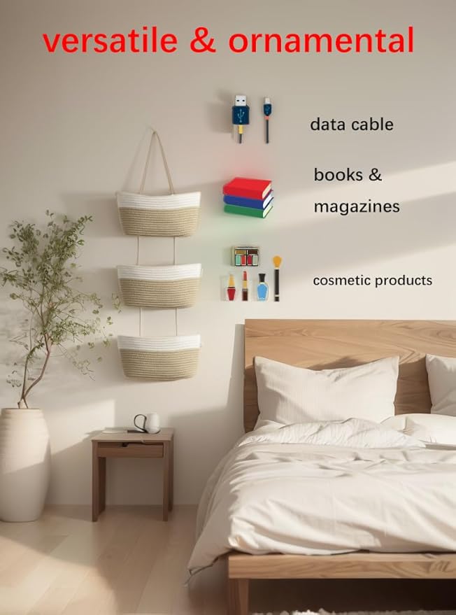 - Storage Assistant : Are you still struggling with organizing small items? This 3-layer wall organizer has a high value and can match any decorating style . Come with 1 sticky hooks ,so you can hang it behind the door or on the wall, it doesn't take up much space!