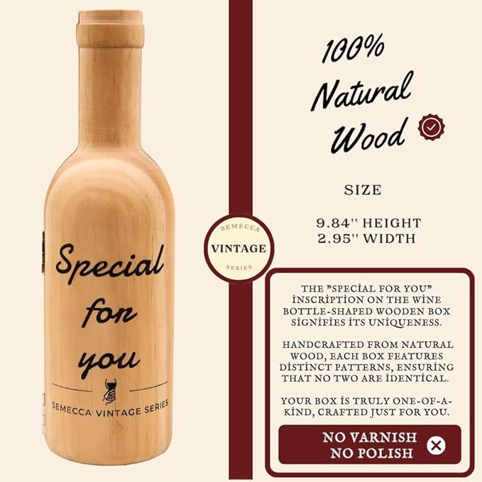 - Elegant Wooden Box: With dimensions of 9.84'' in height and 2.95'' in width, the Semecca Waiter's Corkscrew comes in a specially designed, bottle-shaped wooden box, making it an ideal gift for wine enthusiasts. Perfect for birthdays, anniversaries, or any special occasion, this product can also complement your home wine rack beautifully.
