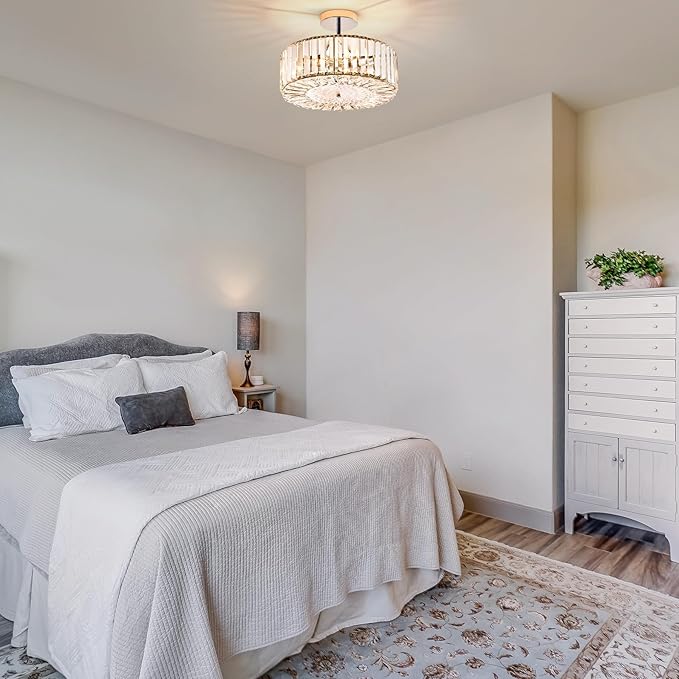 - Versatile Placement: Measuring 15" wide and 10.2" high, this semi-flush mount crystal ceiling light fixture is perfectly proportioned to fit seamlessly into any space, from porches and hallways to entryways, balconies, living rooms, and bedrooms