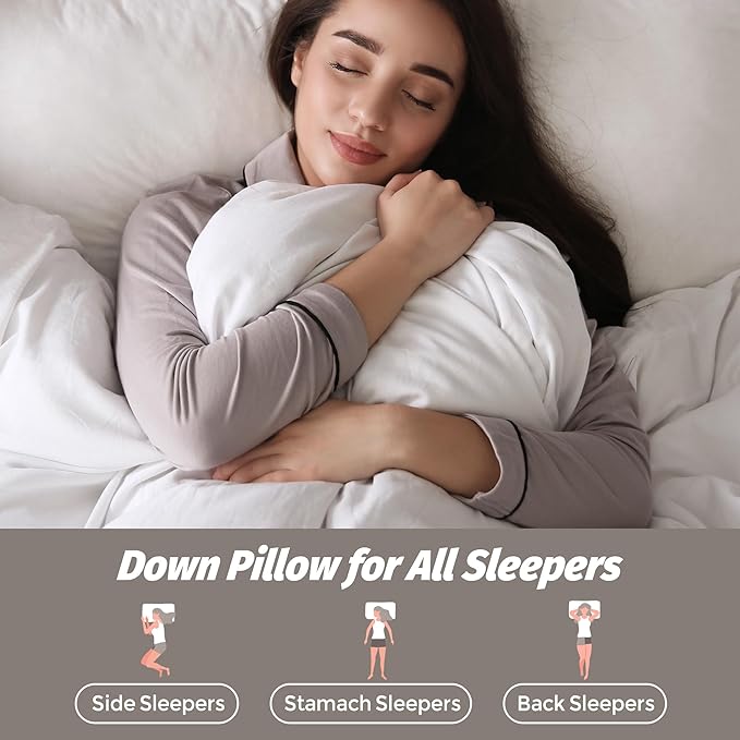 - Cotton Fabric: This down feather pillows encased in organic cotton that is OEKO certified for its safety. Keep you cooling and comfort all night long and enjoy a comfortable and restful sleep with down pillow.