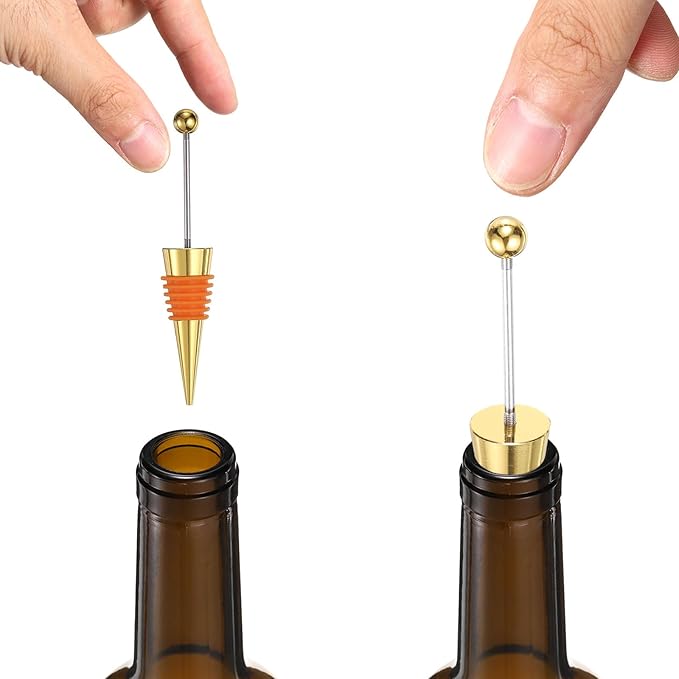 uxcell 10 Pcs Bead Wine Bottle Corks, Wine Stopper Cork, Wine Stopper, Reusable Wine Bottle Corks Sealing Plug Bottle for Beverage Holiday Party Bar,Gold/Orange