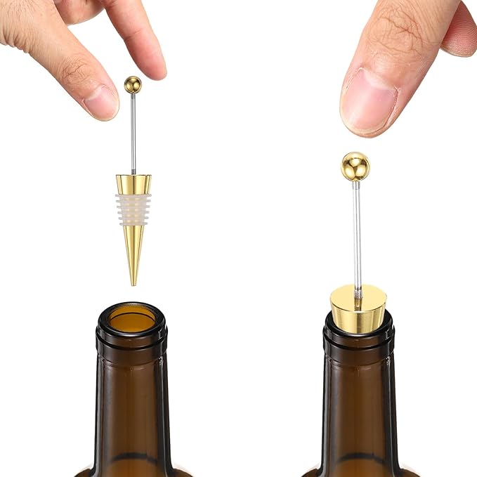 uxcell 10 Pcs Bead Wine Bottle Corks, Wine Stopper Cork, Wine Stopper, Reusable Wine Bottle Corks Sealing Plug Bottle for Beverage Holiday Party Bar,Gold/White