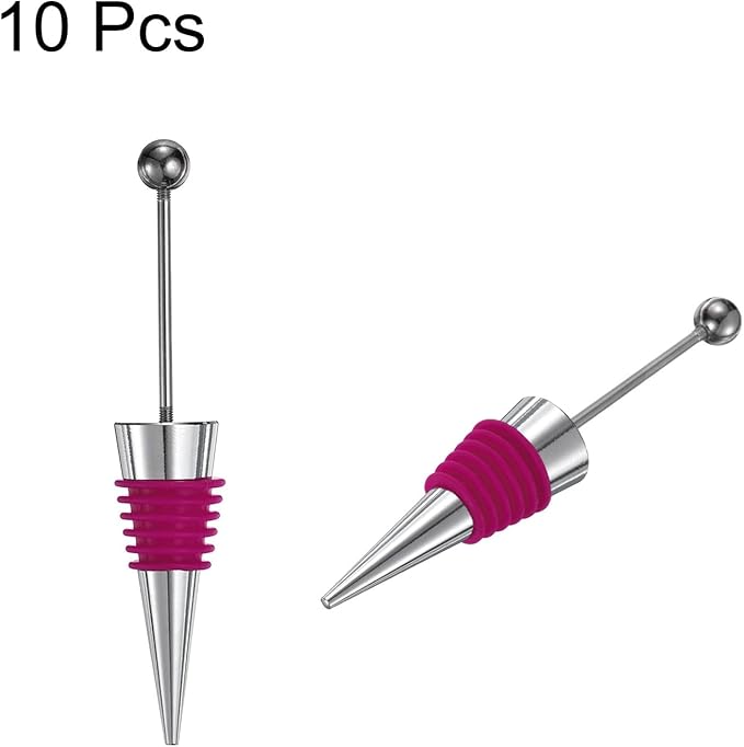 uxcell 10 Pcs Bead Wine Bottle Corks, Wine Stopper Cork, Wine Stopper, Reusable Wine Bottle Corks Sealing Plug Bottle for Beverage Holiday Party Bar,Silver/Deep Red