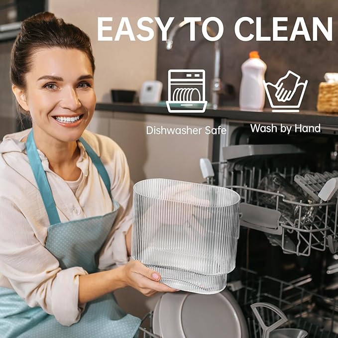 - Elegant Vertical Stripe Design: This utensil holder features a beautiful vertical stripe design in glass, not only adding elegance but also bringing a unique modern style to any dining table or kitchen space.