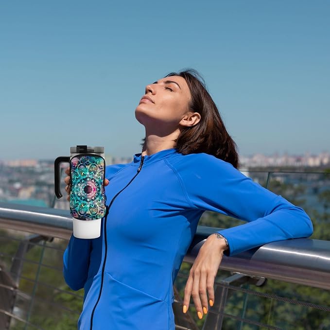 Galaxy Mandala Water Bottle Pouch for Stanley Cup 40oz 30oz,Personalized Gym Purse for Men Women, Tumbler Pouch with Versatile Pocket Water Bottle Bag for Cards, Keys, Phone