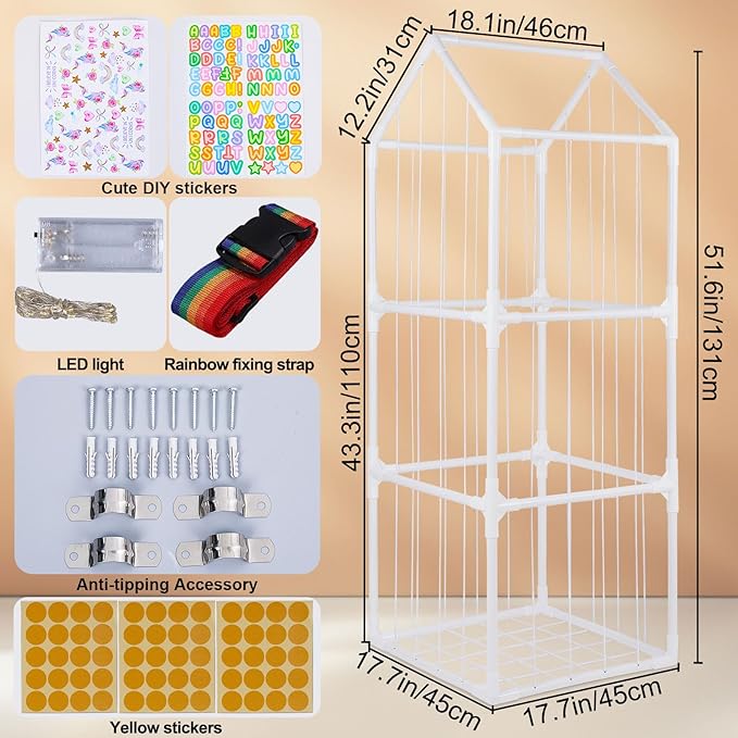 - Premium Materials: Made of PVC pipes and elastic rubber bands, designed with three layers, the toy storage organizer is sturdy; You can also use the rainbow elastic socket band to better secure each PVC pipe, making it more stable while decorating it