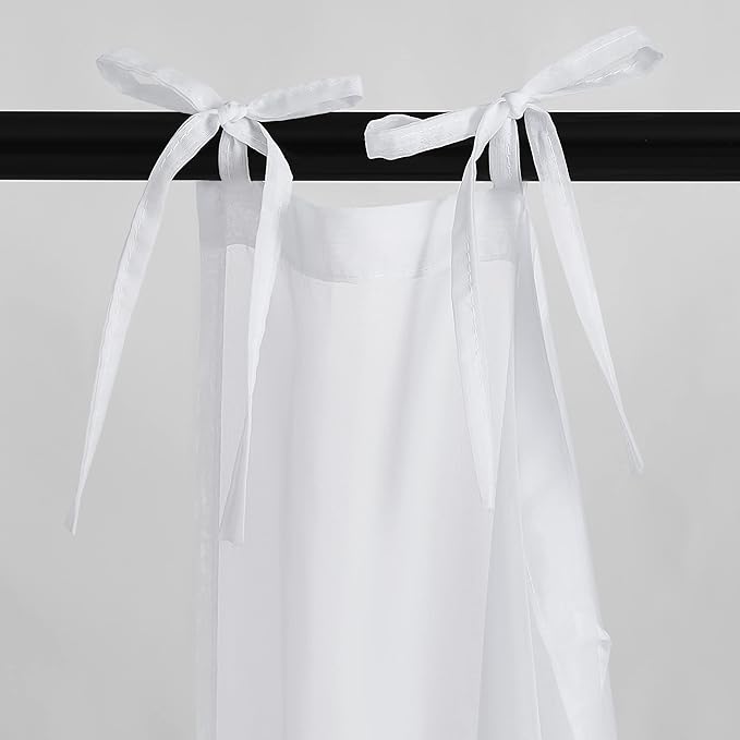 - Included Components:8 Sheer Panels/56 Tie tops (7 per panel)/8 Tie back(attached to curtains). Each panel measures W45 x L84 inches. Bed frame is not included.
